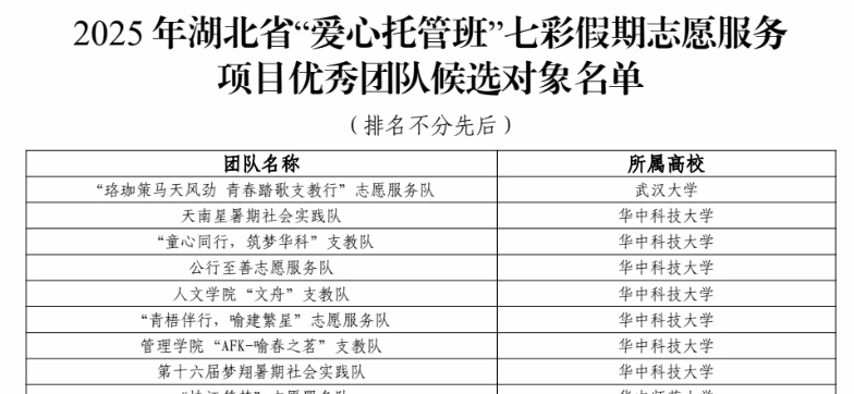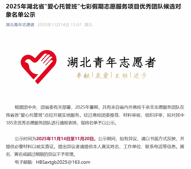 (通讯员 陈金林)近日,湖北省青年志愿者协会公布2025年湖北省“爱心托管班”七彩假期志愿服务项目优秀团队名单,ok138太阳集团“砼心筑梦”志愿服务队凭借扎实的服务成效与突出的综合表现,成功获评“优秀团队”荣誉称号。
