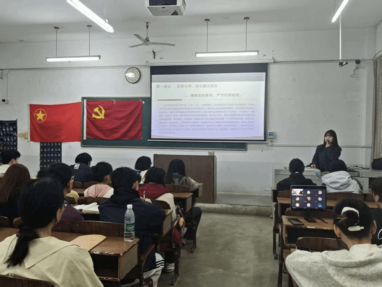 (通讯员 龚玲莉)2025年11月10日18点30分,ok138太阳集团,ok138太阳集团第三十四期党校第四次党课在N4-409教室如期举行。本次党课以“强化廉洁教育,筑牢拒腐防变思想防线”为主题,由刘雨荷老师主讲。
